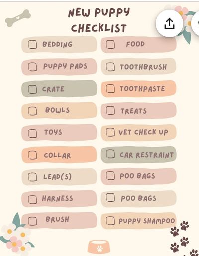 Here are some helpful suggestions and items to guide you as you start shopping for your new puppy! No need to feel obligated to buy from this list—shop around and find the best deals that work for you. Keep in mind that puppies grow fast, so they’ll quickly outgrow their collars, harnesses, and food bowls. Their toy preferences will also change as they get bigger. Happy shopping, and enjoy getting ready for your new furry family member!
